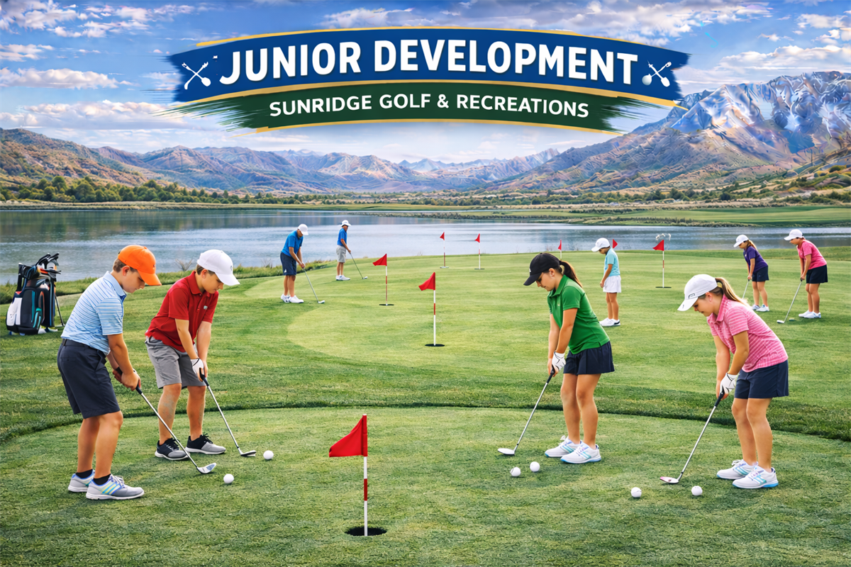 Spring Development Adults is a 6-week coaching program at Sunridge Golf Course running Thursdays, April 2 – May 7. Sessions begin at 12:00 PM and alternate between 90-minute practice days and 2.5-hour guided 9-hole playing lessons. Limited to 8 players. $450 per player.