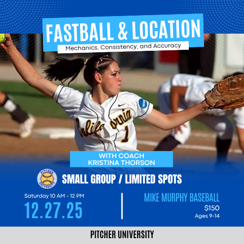 Coach Kristina Thorson is hosting this clinic to hone in every aspect of the fastball (or dropball). Pitchers will focus on mechanics and learn how to consistently hit their locations. This clinic is for fastpitch softball pitchers only