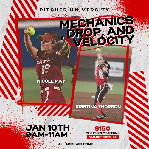 Pitchers! Come work with Nicole May (University of Oklahoma) and Coach Thor for a 2-day clinic where we'll build and cement in your pitching foundation. We'll cover: